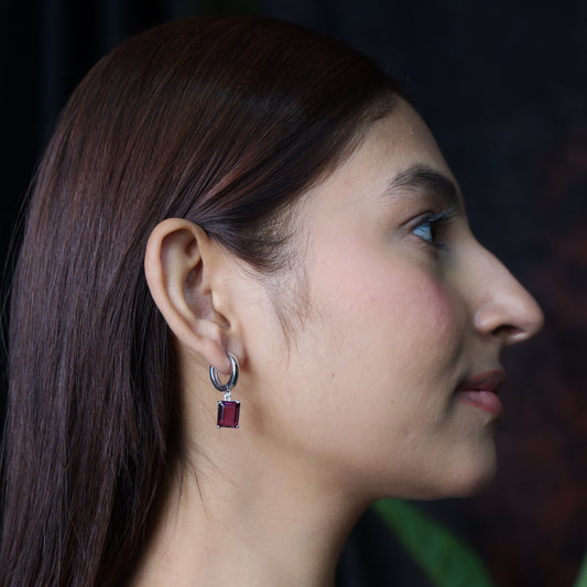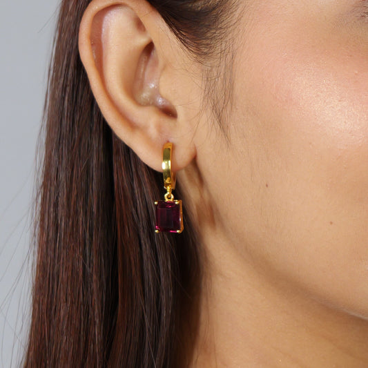 CLASSIC SQUARE EARRINGS- RHODOLITE(S)
